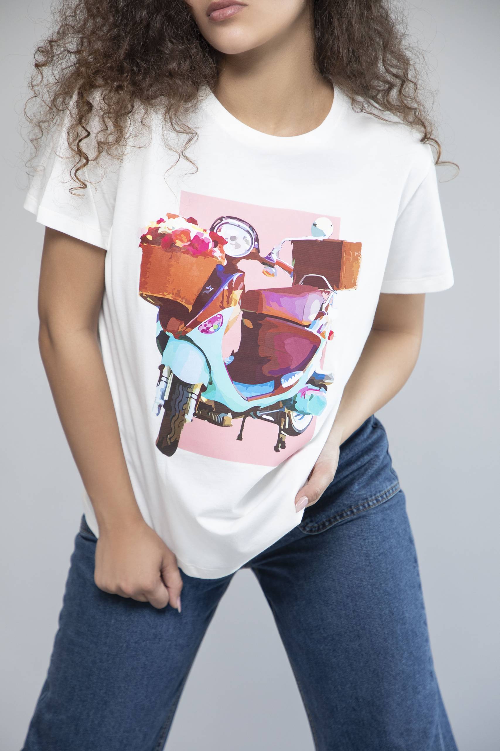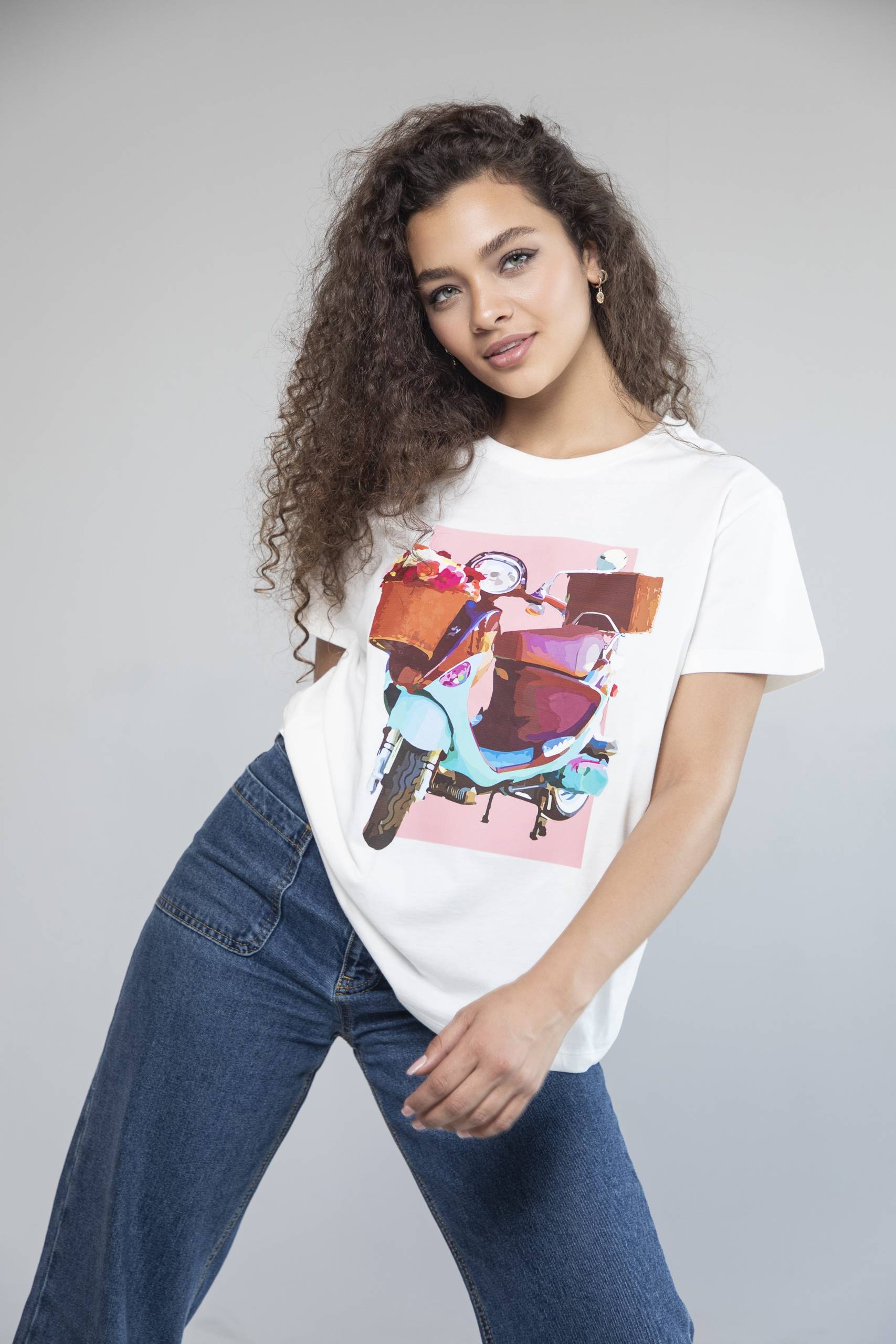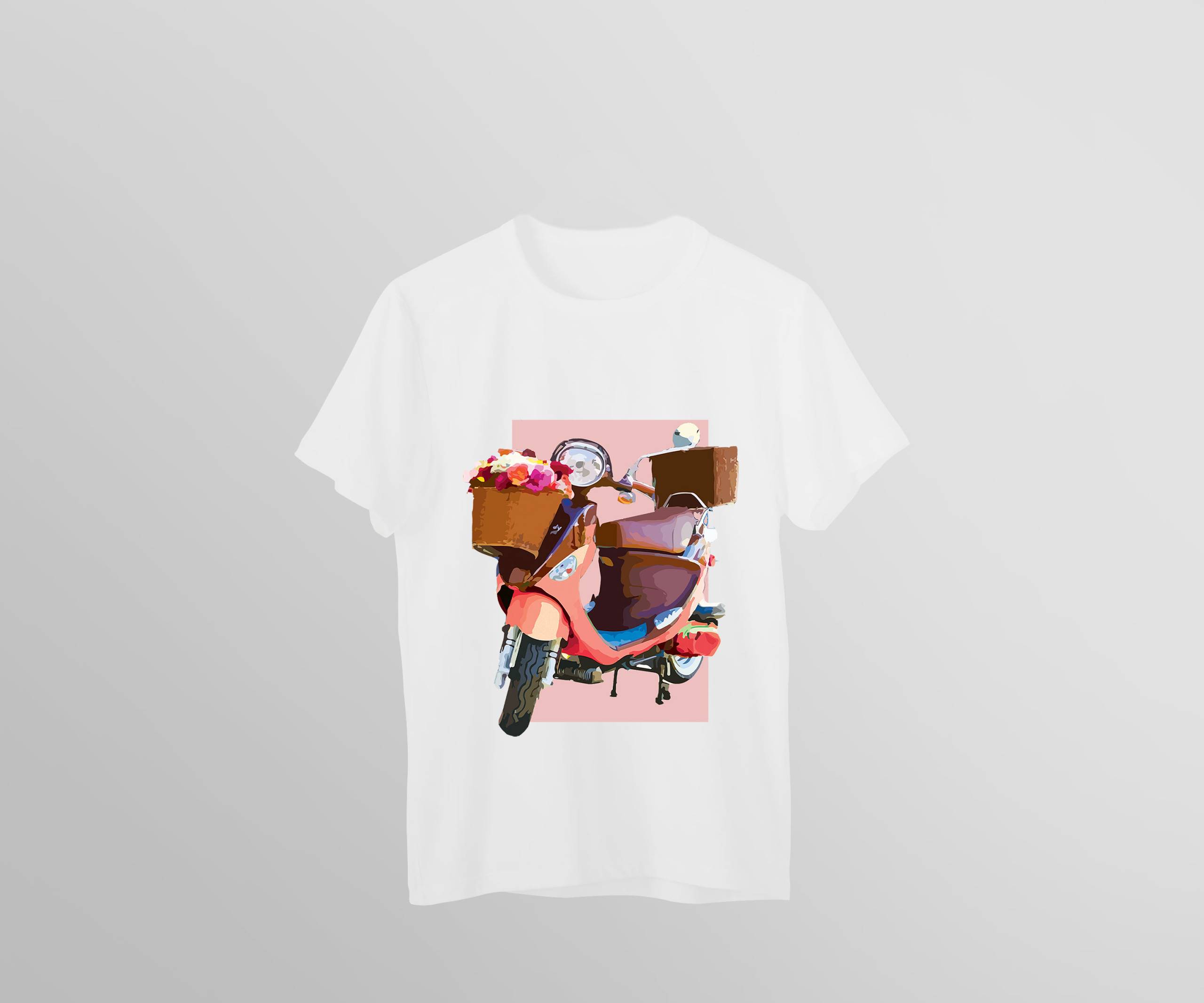 A beautiful representation of freedom, Italy, and dreams, made from 100% cotton, the classic Vespa adorned with vibrant flowers, evokes a sense of carefree adventure and wanderlust that the wearer possesses.